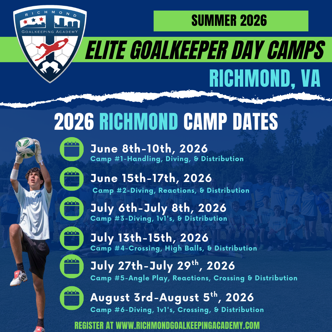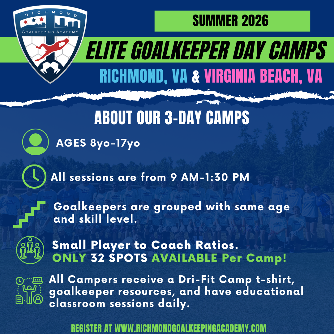 Please Note: If you're a top level Elite Goalkeeper please check out our Elite Select Invite Only Residential Camp Here. If you would like to apply for our Elite Select Camp, please submit a 2-3 minute highlight video for consideration. Videos can be emailed to info@richmondgoalkeepingacademy.com .